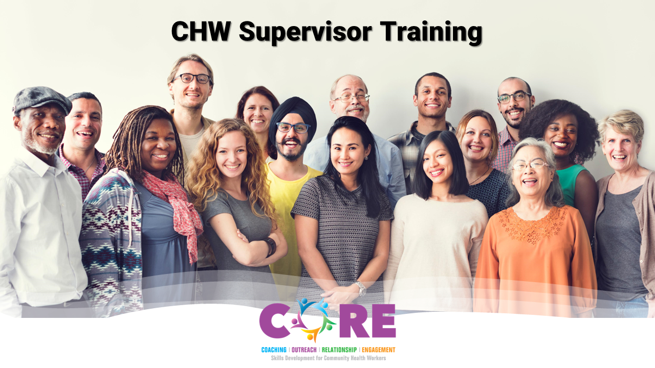 This training is designed to ensure individuals charged with supervising CHWs are armed with understanding of who CHWs are and the work they do, and the knowledge and strategies they need to ensure CHWs are empowered and supported in their important roles.