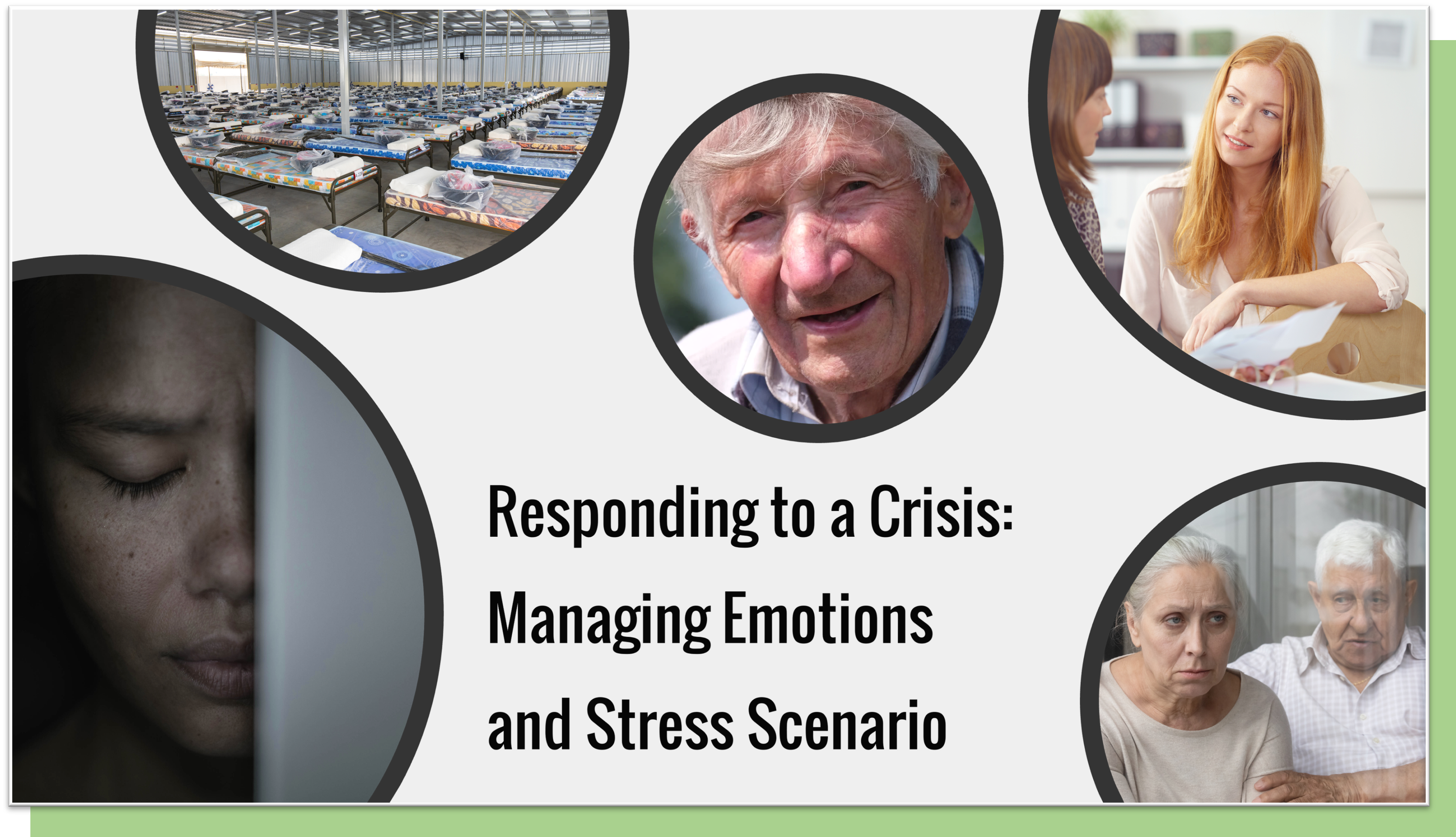 This course utilizes scenario-based learning to cover concepts of Psychological First Aid in responding to disasters. The learner makes decisions about how to respond to the emotional needs of disaster victims and volunteers.