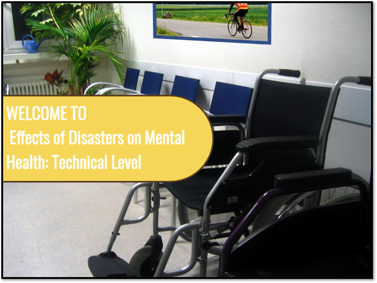 - Describe mental health interventions used during and in the immediate aftermath of a disaster in order to provide psychological stabilization.