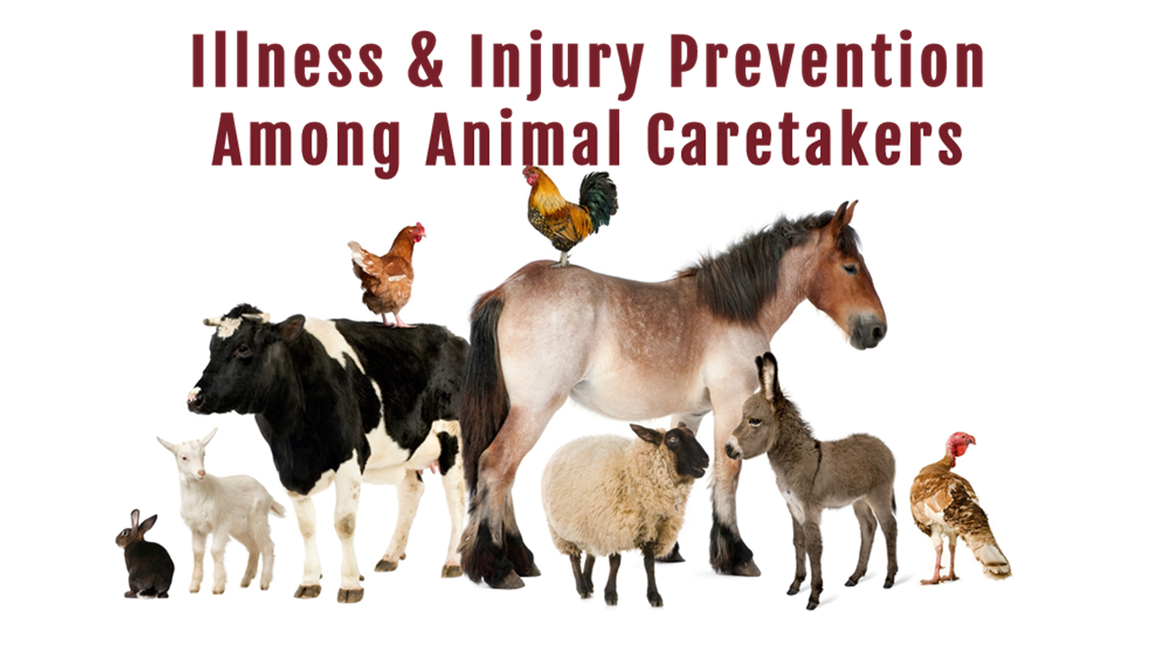 The goal of Illness & Injury Prevention Among Animal Caretakers is provide a basic understanding of the hazards for individuals that handle or treat livestock on a regular basis. Animal caretakers engage in demanding tasks moving livestock and equipment and may be inadvertently kicked, bitten, or exposed to biological hazards.